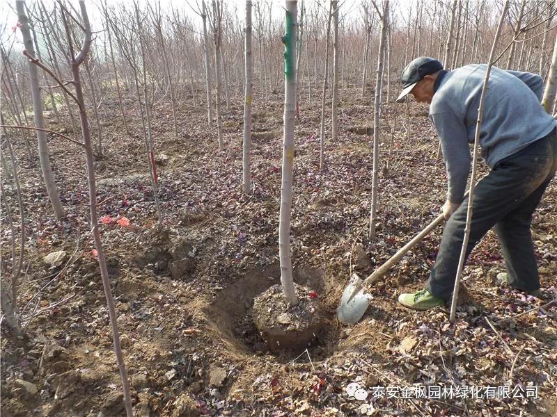 美國紅點(diǎn)紅楓秋栽在秋季落葉后到土壤封凍前(多在11月下旬到12月中旬)栽植。秋季雖然氣溫明顯下降,但地溫卻相對較高,有利于早苗根系傷口的愈合,縮短了緩苗期,提高了成活率,第二年春季早芽萌發(fā)快,發(fā)根早,樹體生長勢強(qiáng)。農(nóng)諺“秋栽先發(fā)根,春栽先發(fā)芽,早種幾個月,生長賽一年”說的就是這個道理。一般來說,秋栽的苗木有幾下特殊要求,如二次枝盡量不剪除,以減少傷口部位失水,少有的傷口部位也應(yīng)該用油漆涂抹以減少水分蒸騰,同時栽種后要在樹干基部堆土或在樹干上用到擦捆綁以預(yù)防凍害等。美國紅楓的秋栽時適當(dāng)早栽比晚栽好。